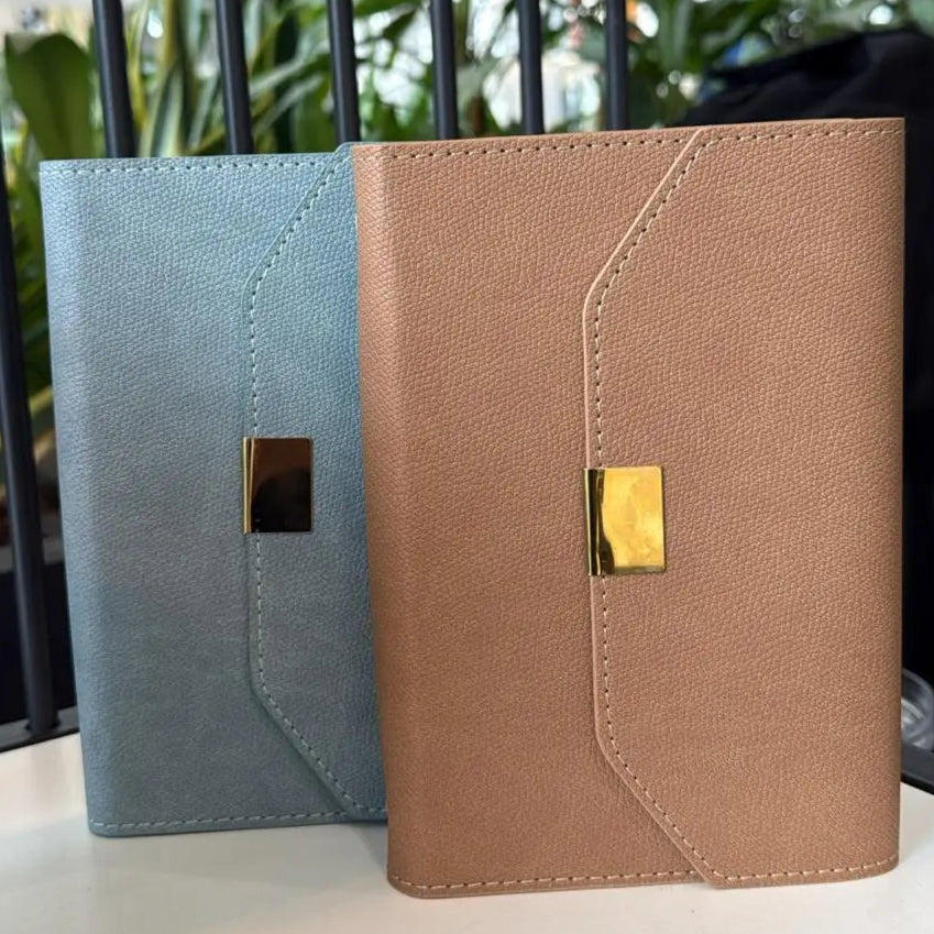 Fecho Magnético: A placa dourada no fecho mantém o seu bloco de notas bem fechado e protegido, adicionando um toque de sofisticação.